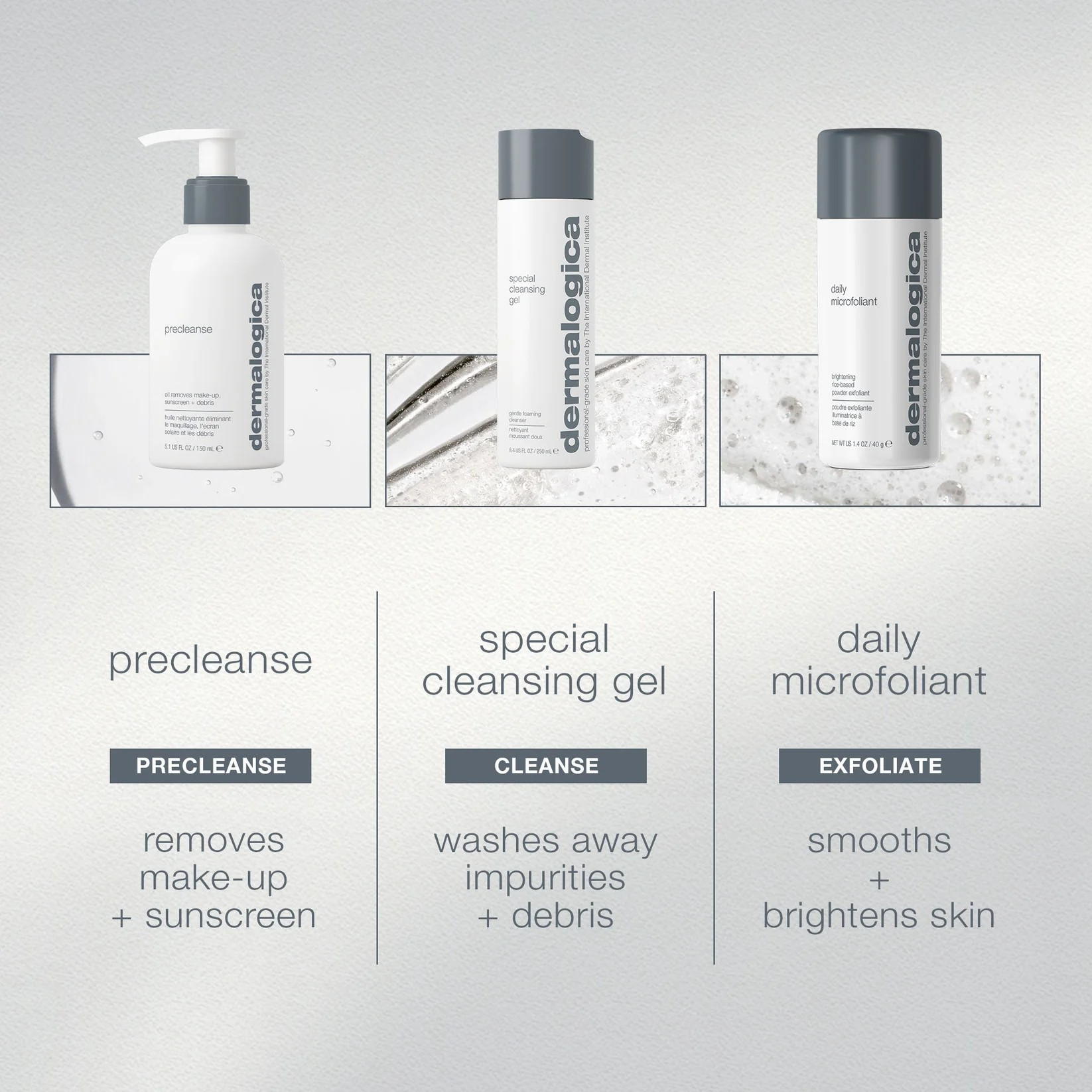DERMALOGICA LET IT GLOW SET (3 FULL-SIZE) - 3-step cleansing essentials