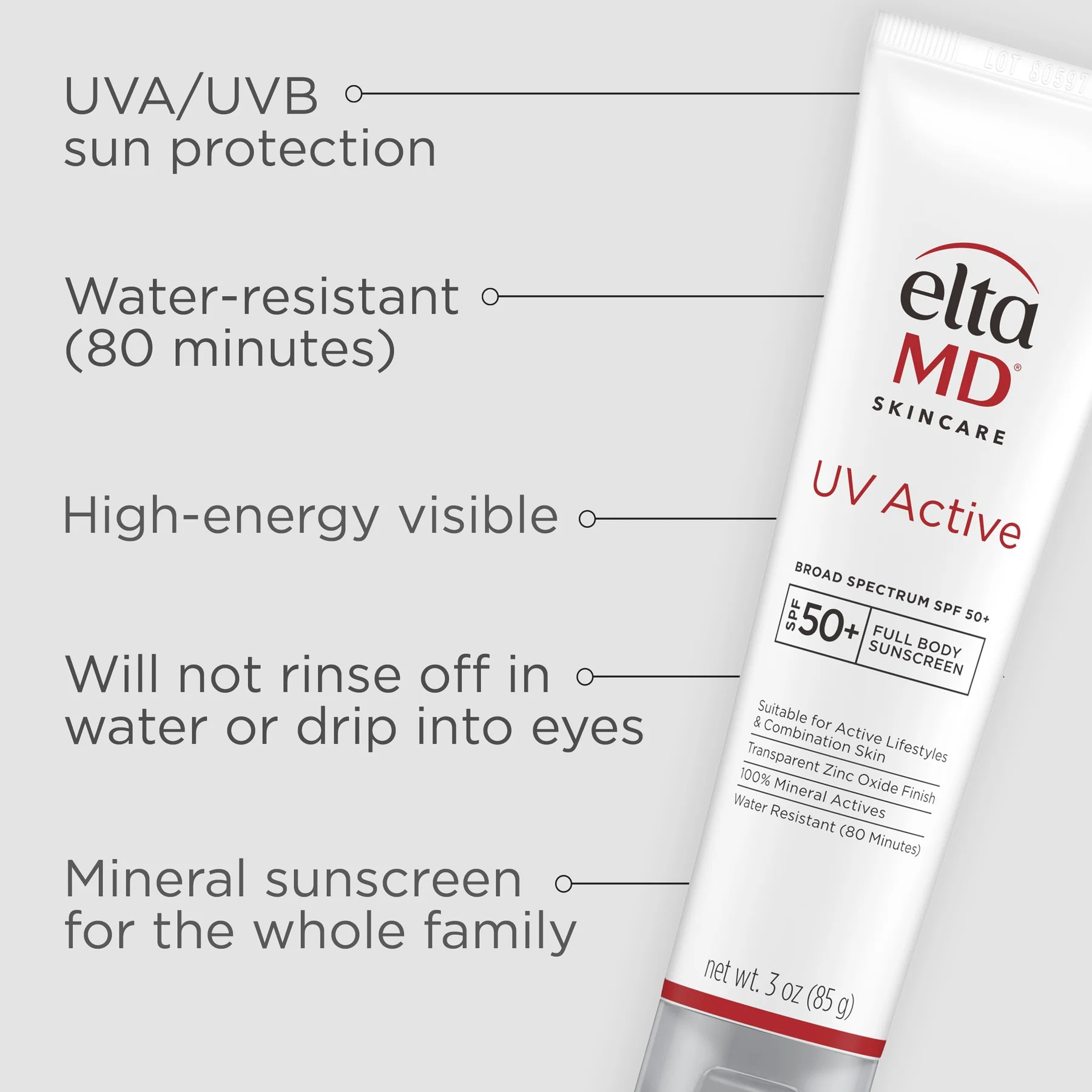 EltaMD UV Active Broad-Spectrum SPF 50+ is a pure mineral sunscreen with 100...